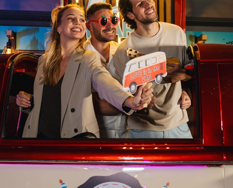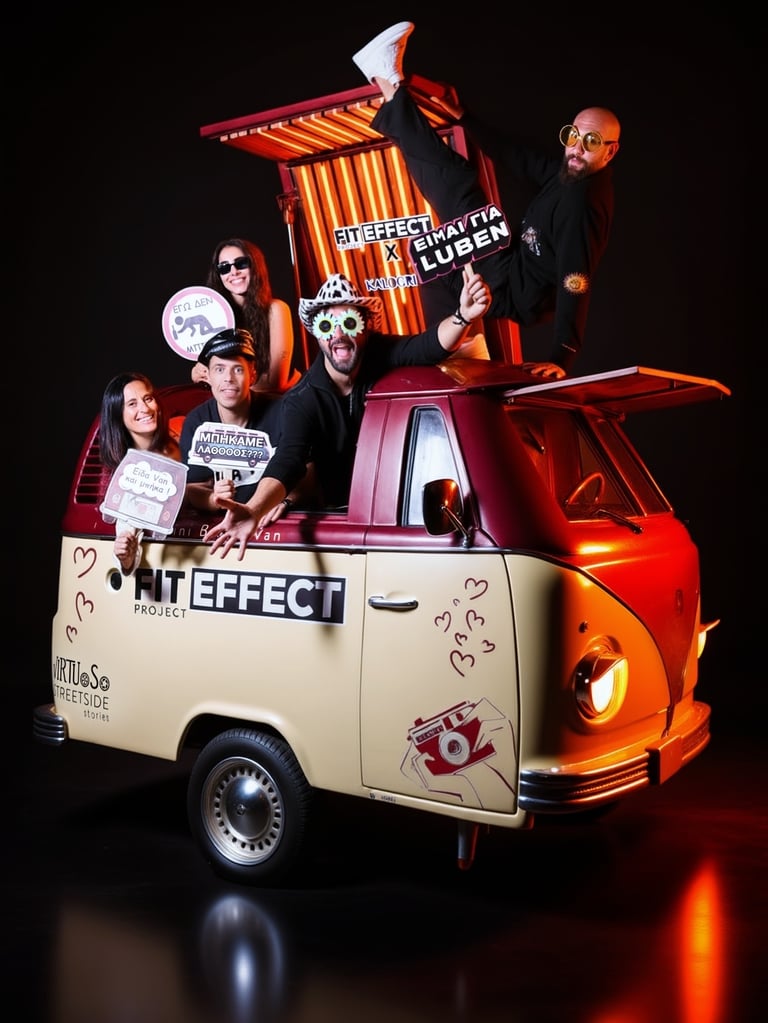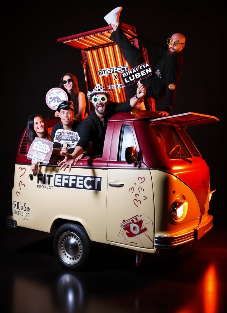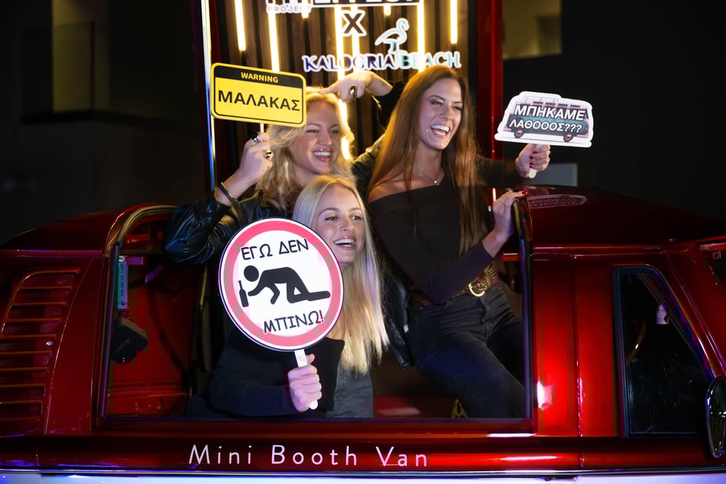 Ένα απόλυτα custom photobooth van σχεδιασμένο και κατασκευασμένο αποκλειστικά από εμάς. Ο επισκέπτης μπαίνει στο εσωτερικό του van και φωτογραφίζεται από εξωτερική κάμερα με επαγγελματικό εξοπλισμό, δημιουργώντας μια μοναδική στιγμή. Το van διακοσμείται και διαμορφώνεται πλήρως σύμφωνα με το concert κάθε event, αποτελώντας ένα πρωτότυπο φωτογραφικό σκηνικό χωρίς αντίστοιχο παγκοσμίως.