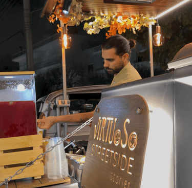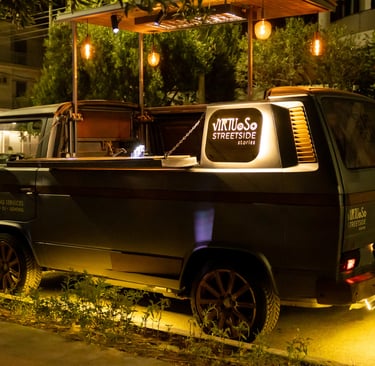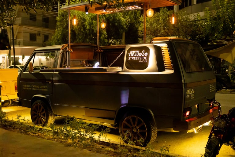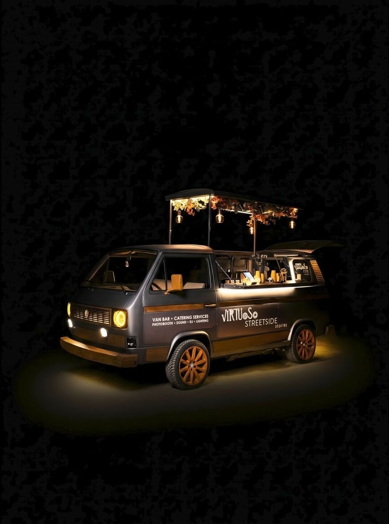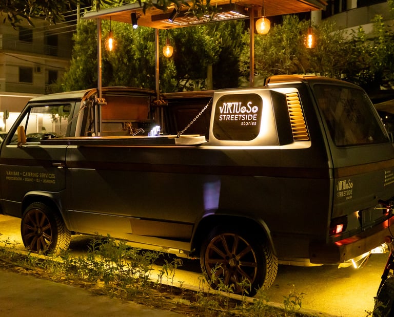 Ένα custom van bar catering, που συνδυάζει υψηλή αισθητική, μοναδικά cocktails αλλά και live kitchen. Προσφέροντας μια αυθεντική street-gourmet εμπειρία που εξελίσσεται μπροστά στα μάτια των καλεσμένων σας και αναβαθμίζει κάθε event.
