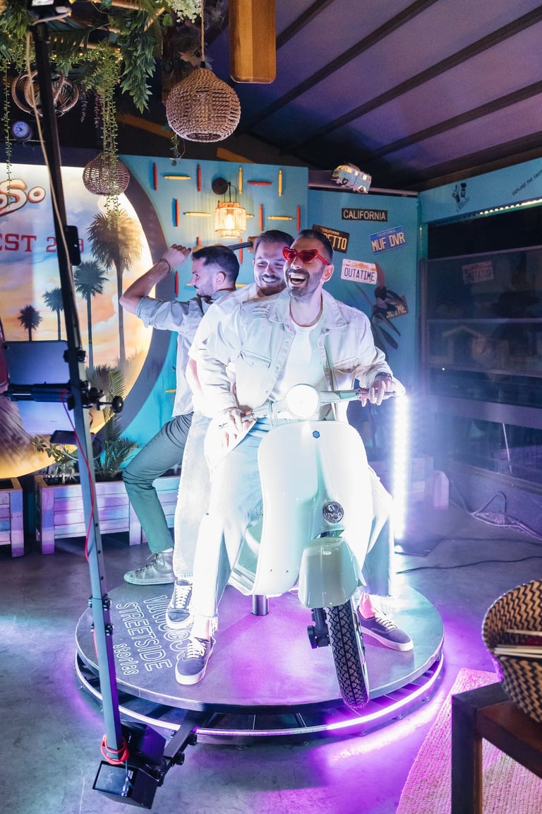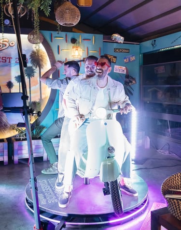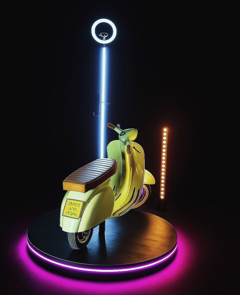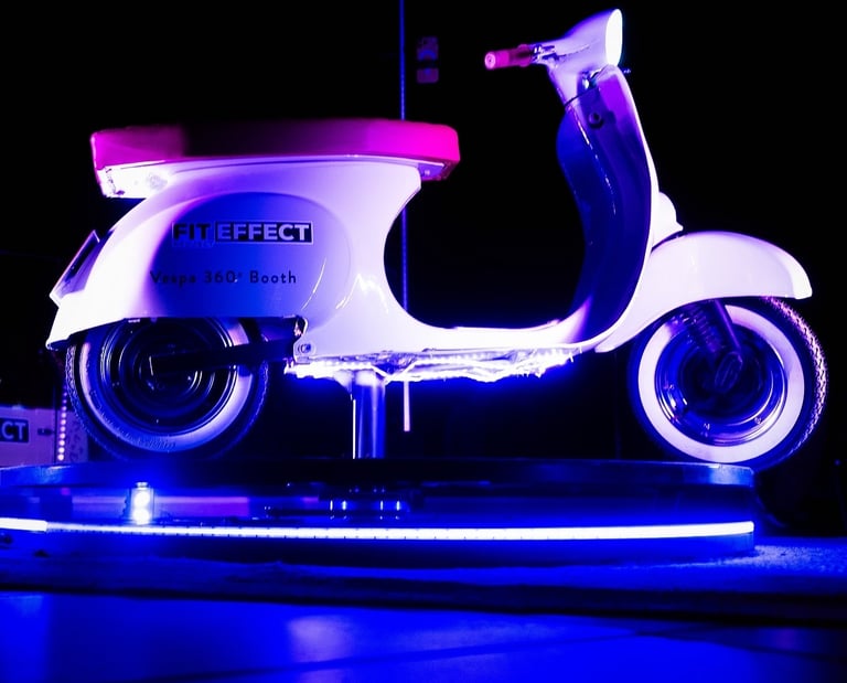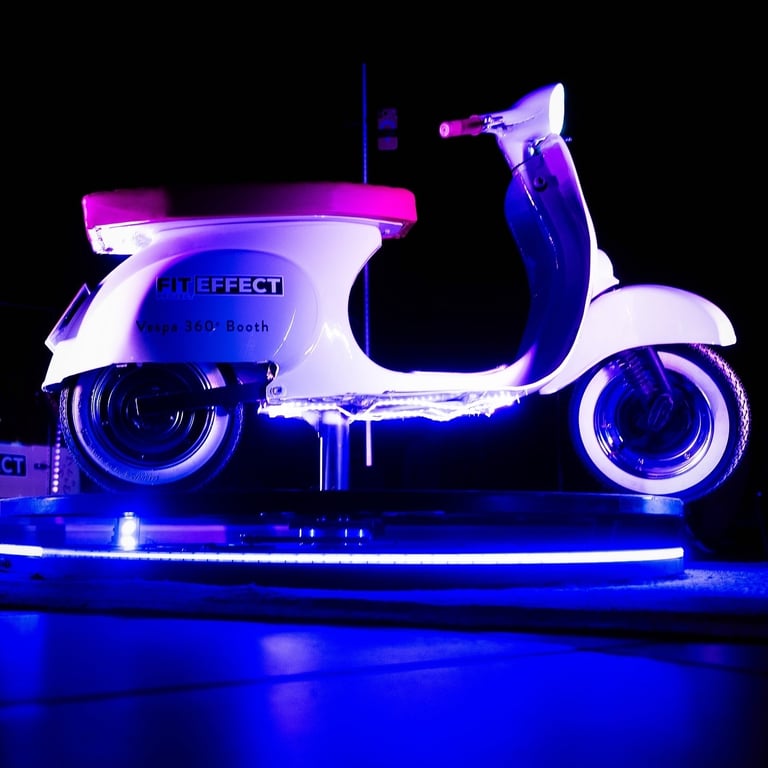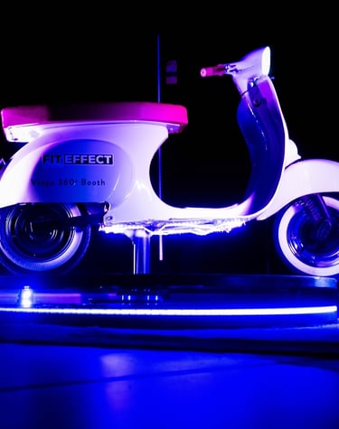 Μια πλήρως custom 360° vespa που συνδυάζει κίνηση, φως και εικόνα, λειτουργεί ως διαδραστική εμπειρία video σχεδιασμένο αποκλειστικά για εκδηλώσεις που θέλουν να ξεχωρίζουν. Ένα πρωτότυπο concept χωρίς αντίστοιχο παγκοσμίως, που μετατρέπει κάθε event σε οπτικό γεγονός.