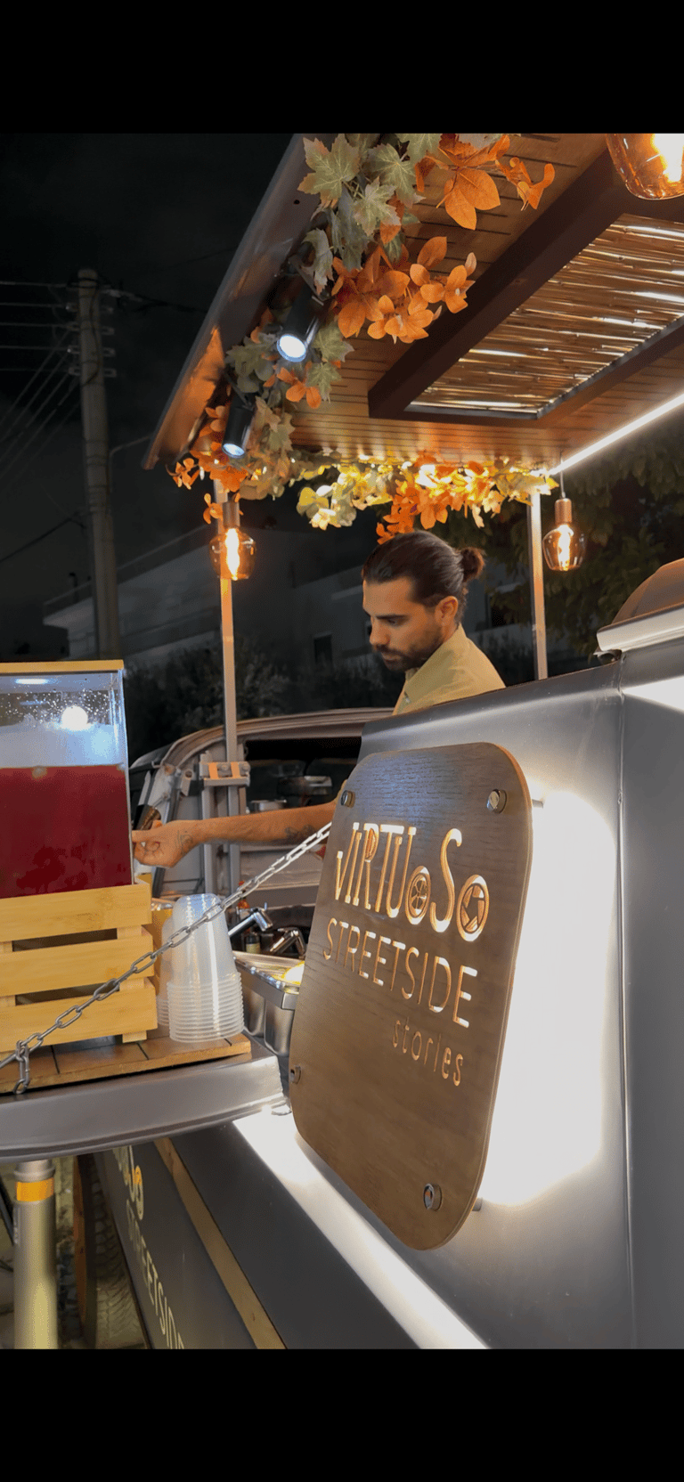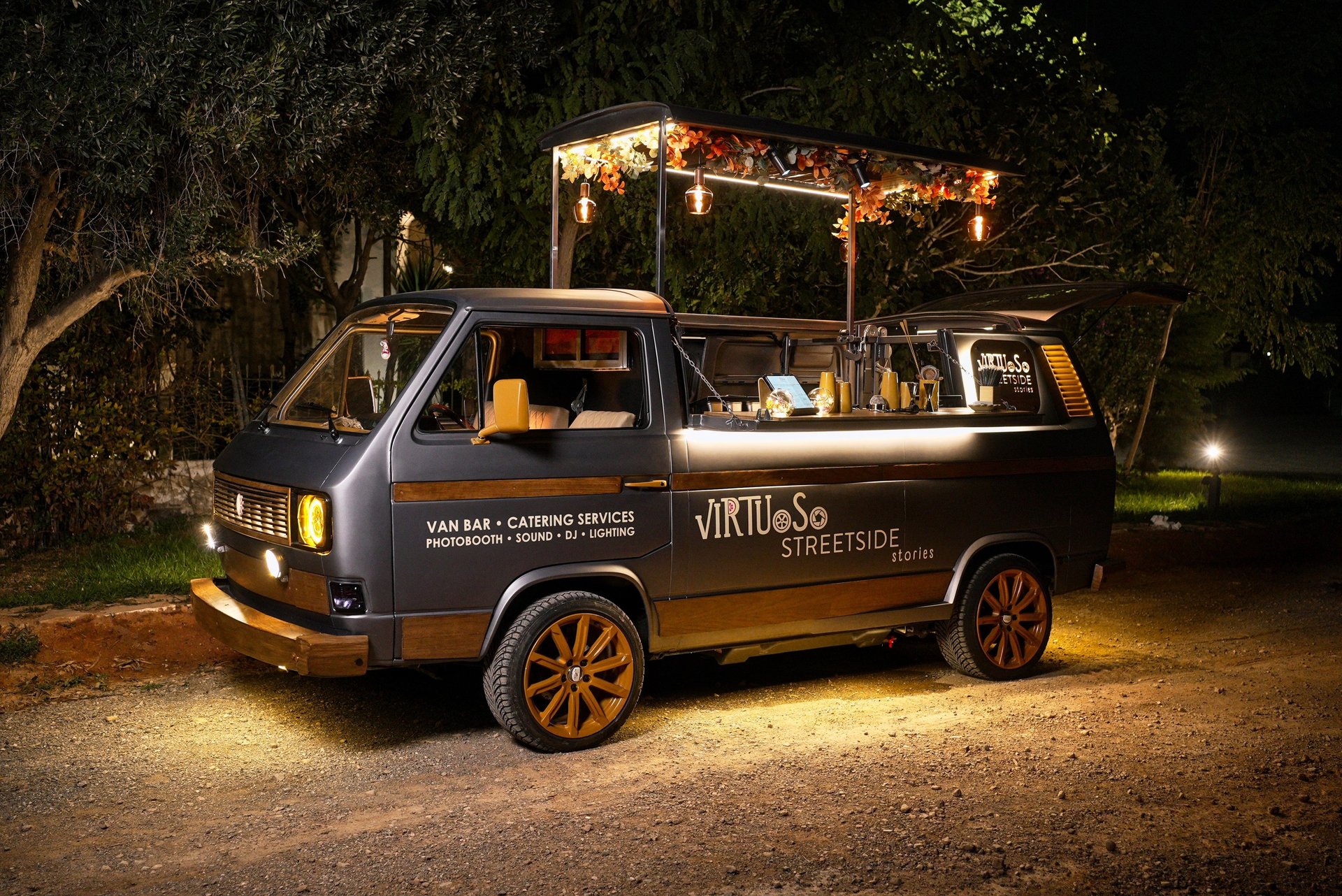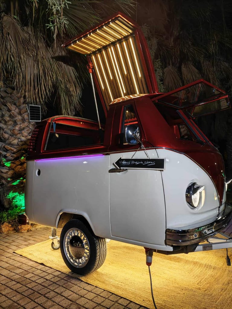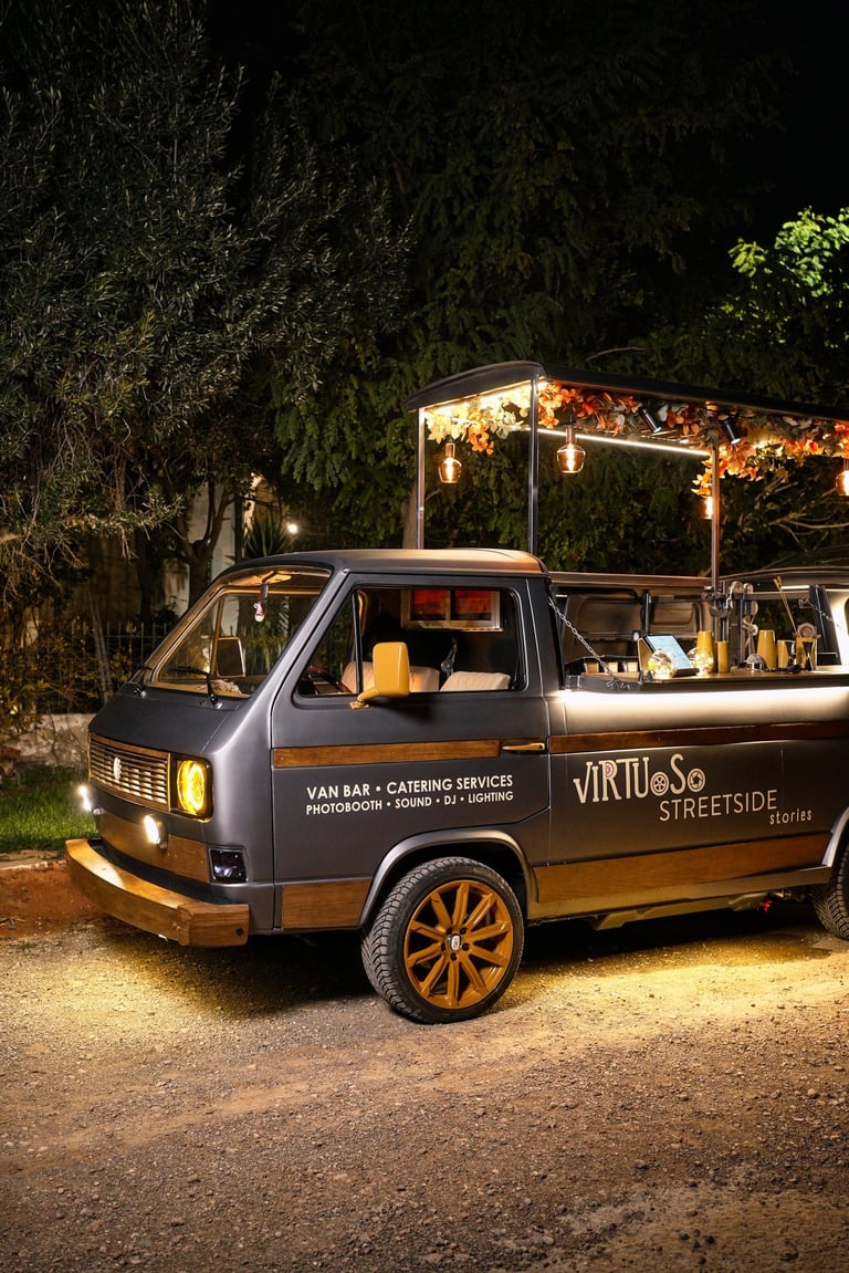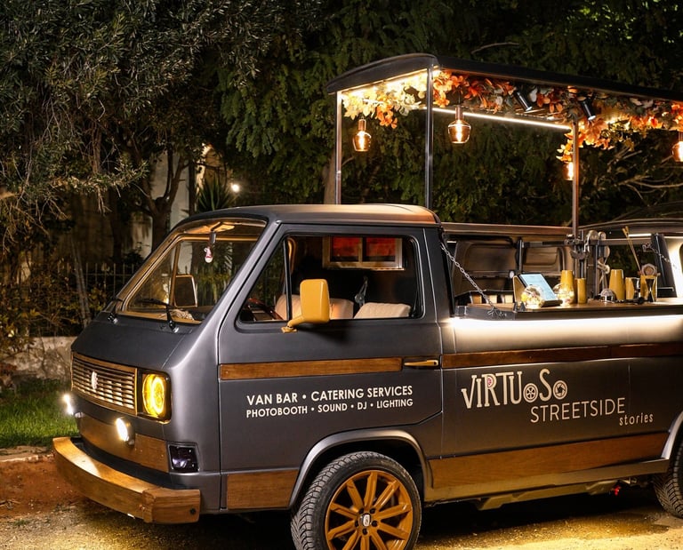 Ένα custom van bar catering, που συνδυάζει υψηλή αισθητική, μοναδικά cocktails, ιδιαίτερα fingerfood αλλά και live kitchen, προσφέροντας μια αυθεντική street-gourmet εμπειρία που εξελίσσεται μπροστά στα μάτια των καλεσμένων σας και αναβαθμίζει κάθε event.