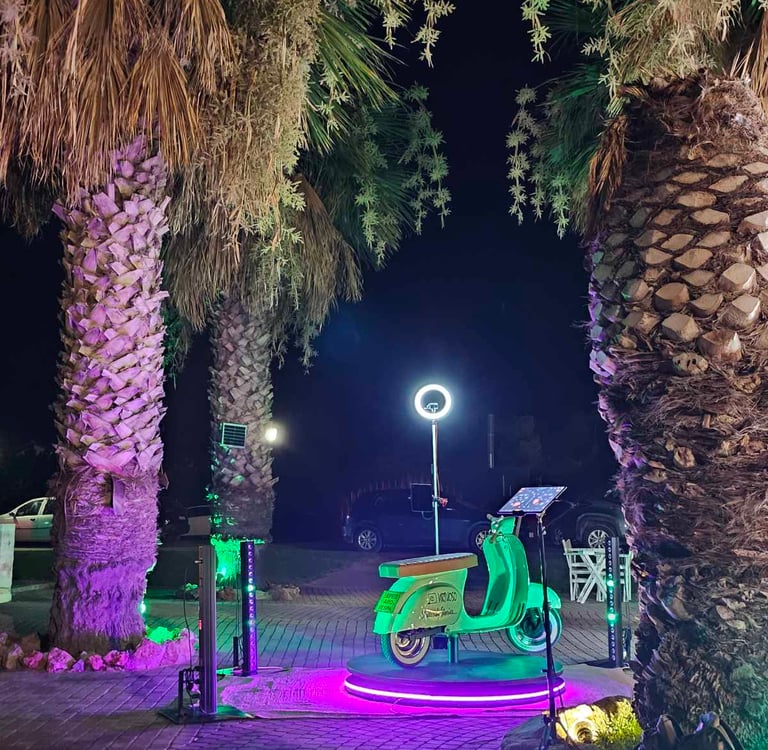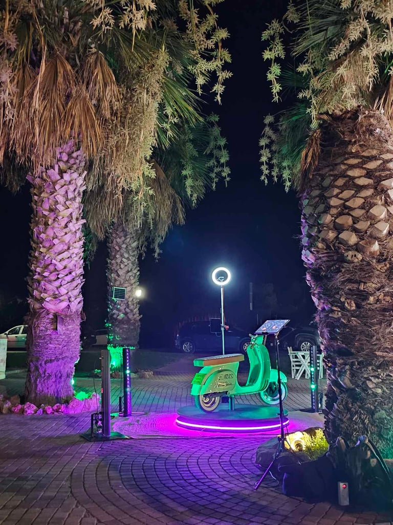 Ένα πλήρως custom 360° vespa booth που συνδυάζει κίνηση, φως και εικόνα, λειτουργεί ως διαδραστική εμπειρία video σχεδιασμένο αποκλειστικά για εκδηλώσεις που θέλουν να ξεχωρίζουν. Ένα πρωτότυπο concept χωρίς αντίστοιχο παγκοσμίως, που μετατρέπει κάθε event σε οπτικό γεγονός.