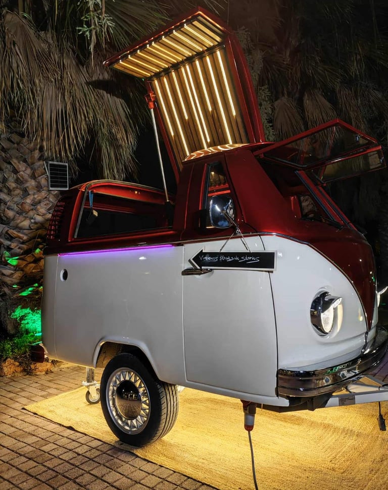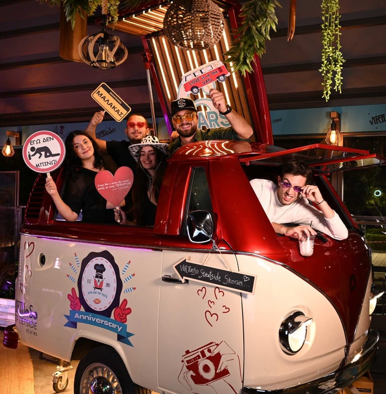 Ειμαστε μια εταιρΙα που επαναπροσδιορίζει τον τρΟπο με τον οποΙο ζεις Ενα event. Με custom Van bar catering, δΥο υψηλΗς αισθητικής photobooth, 360° vespa booth και mini booth van, δημιουργοΥμε ολοκληρωμΕνες εμπειρΙες για εταιρικΑ events, private parties, γΑμους υψηλΩν απαιτΗσεων,βαπτίσεις,γενΕθλια,προωθητικΕς ενΕργειες κ. λ. π.